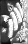 The montage of images is literally possible in the case of these two twelve-part works . The components can be interchanged in any order or replaced without doing any violence to the conception. These series are steadily being supplemented by making a new parts, so that one could say we have here drawings without end: a concept which thus can be realised not only with new media, but also with pencil on paper.